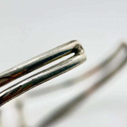 古いインディアンジュエリーには刻印のないものも多く、本品もサイン・925刻印は確認できませんが、アシッドテストにて銀反応を確認済みです。