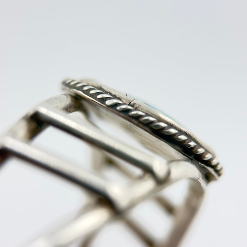 ターコイズには天然由来のクラックが見られますが、使用に問題はなく、経年による銀特有のくすみや歪みが味わい深い雰囲気を醸し出しています。