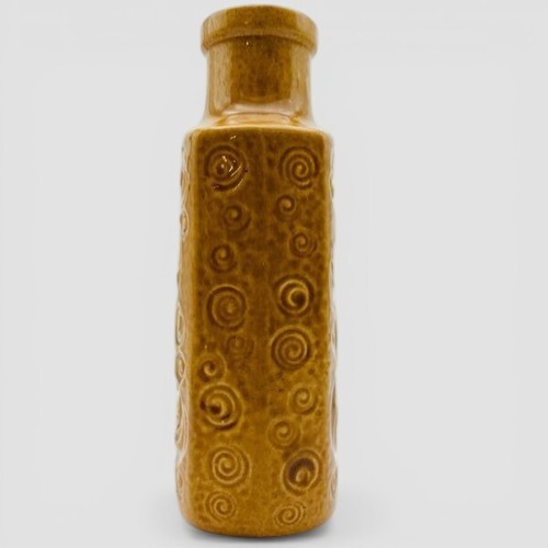 名門Scheurich(シューリッヒ)による「482-28」モデル。力強い渦巻き模様のエンボス加工と、ミッドセンチュリー期の家具に美しく馴染む深みのあるブラウンが特徴です。欧米のコレクターの間でも非常に人気が高まっている「Fat Lava」期を彷彿とさせる、アート性の高い一点物。底面には「482-28/W Germany」の刻印が残っています。