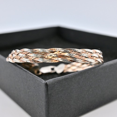 M1395 Vintage 1970's FAS ヘリンボーン 編み込み ブレスレット 925