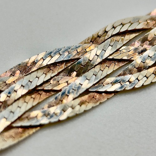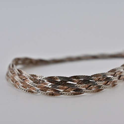 スターリングシルバー(925)のフラットチェーンを複数本編み込んだクオリティの高いデザインです。