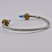 銀線を捻り合わせたケーブルデザインをベースに、真鍮の装飾とターコイズをあしらった、当時のタスコらしい一品。