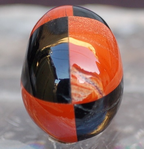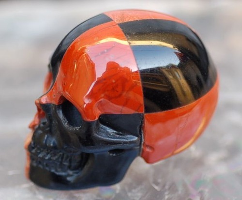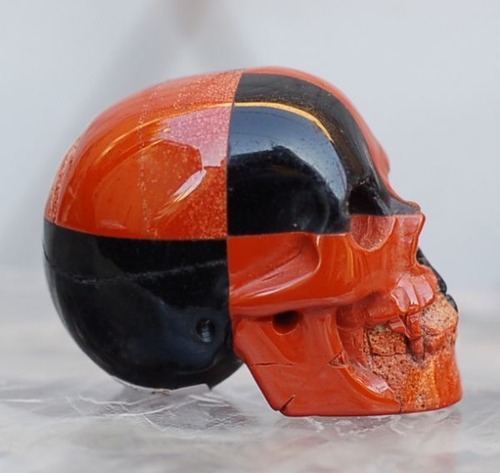 [K3811] Vintage 1980s スカル オブジェ レッドジャスパー ブラックオニキス メキシカンスカル