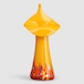 オレンジ色のベースに赤色や青色のグラデーションが広がる、素晴らしい配色のアートを感じるデザインです。落ち着いた赤色がガラスの中に溶け込んでいるような、手作りならではの色合いが特徴で、職人の手作業による独創的なフォルムと見事に融合しています。